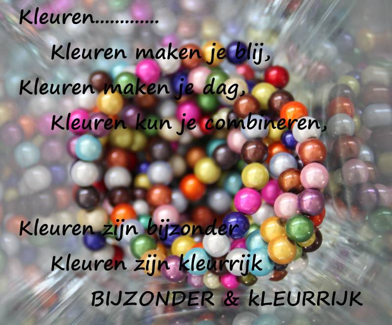 Ik wilde graag een naam aan mijn bedrijf geven, waar een persoonlijk tintje aan zat. Ik heb ervoor gekozen om de initialen van onze zoons Bjorn en Kevin te verwerken in mijn bedrijfsnaam. Het resultaat is Bijzonder en Kleurrijk geworden. Bijzonder, omdat mijn accessoires uniek zijn en ik ze zelf ontwerp en maak. Kleurrijk, omdat ik werk met gekleurde kralen in combinatie met andere materialen. (Zie voor een aantal voorbeelden de foto's. Erop klikken om te vergroten)